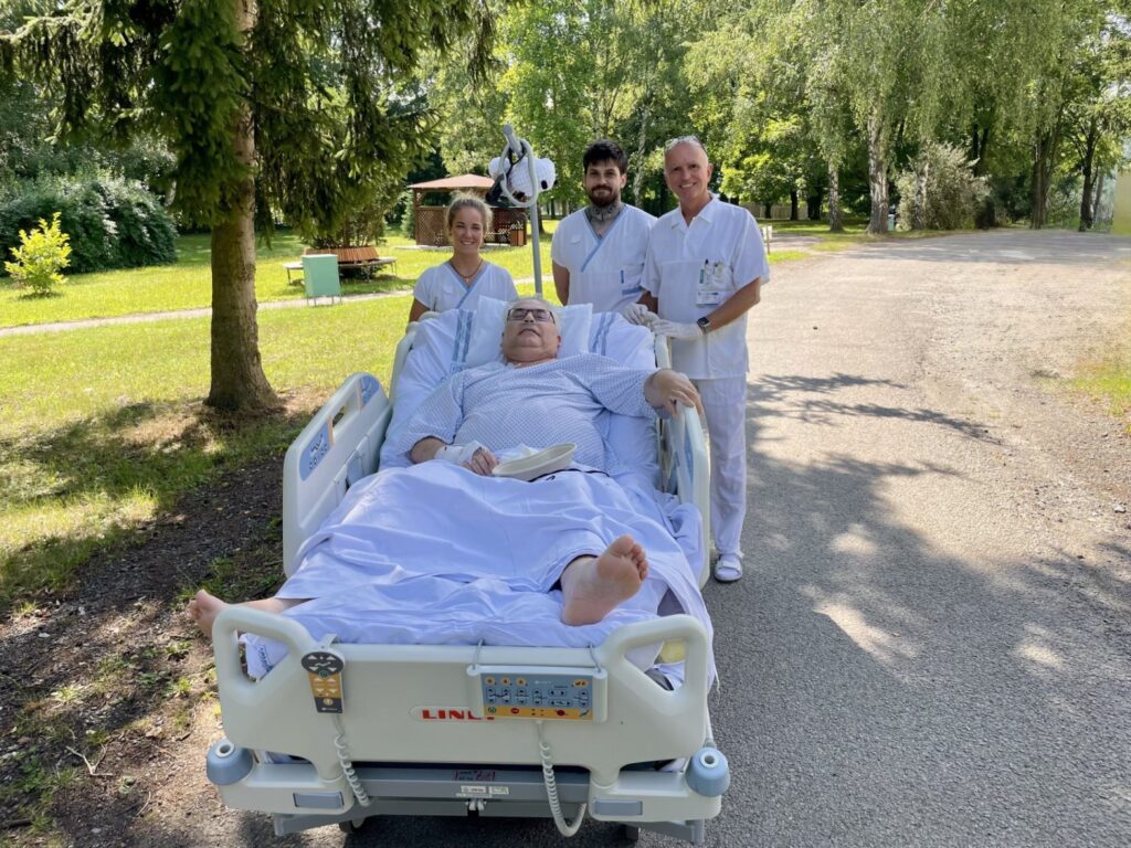 Obrovská radost – ARO pacient po kritickém stavu v nemocniční zahradě